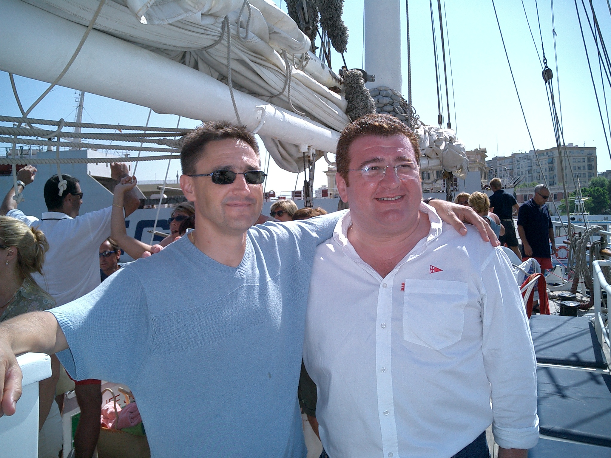 - Gaspar Rosety su amigo Silvestre en el Restaurante Salamanca, en el Puerto Olimpico de Barcelona.