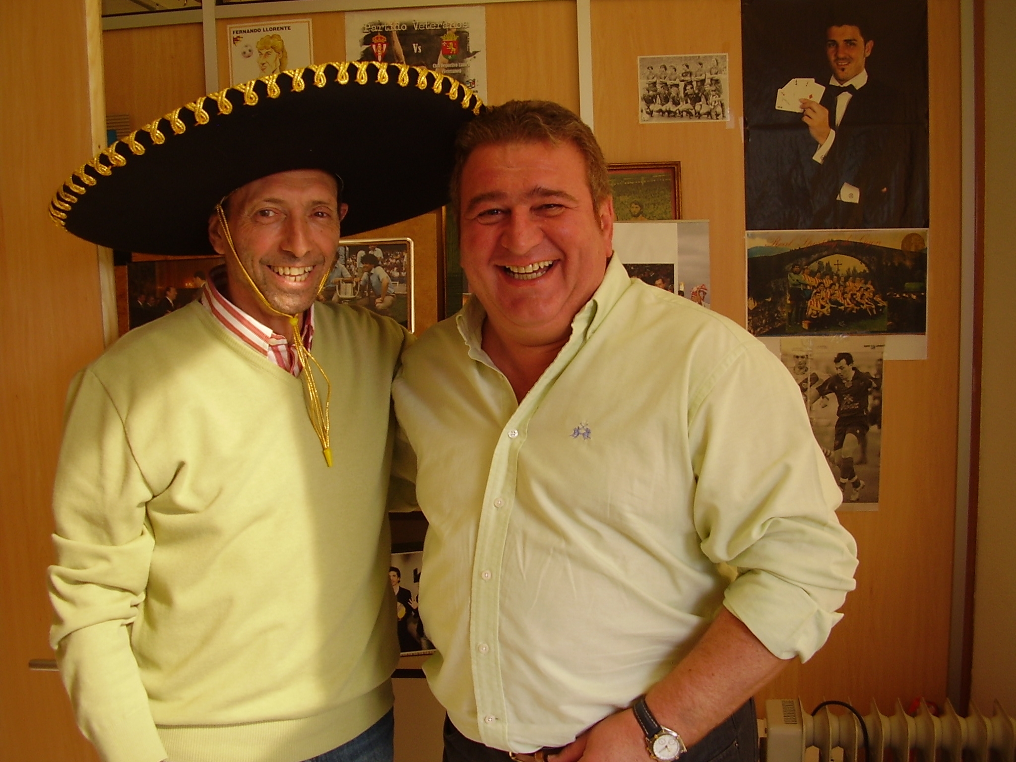 - Quini, con un sombrero Mexicano, junto a Gaspar.