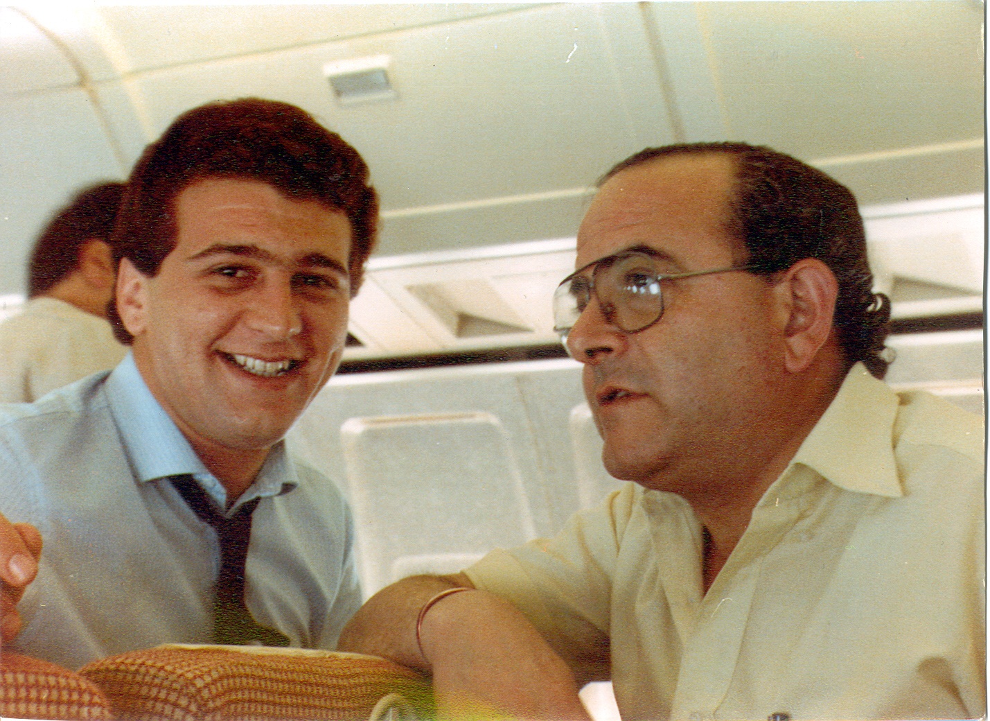 - Con Antonio Maceda antes de narrar mi primer partido de TV.