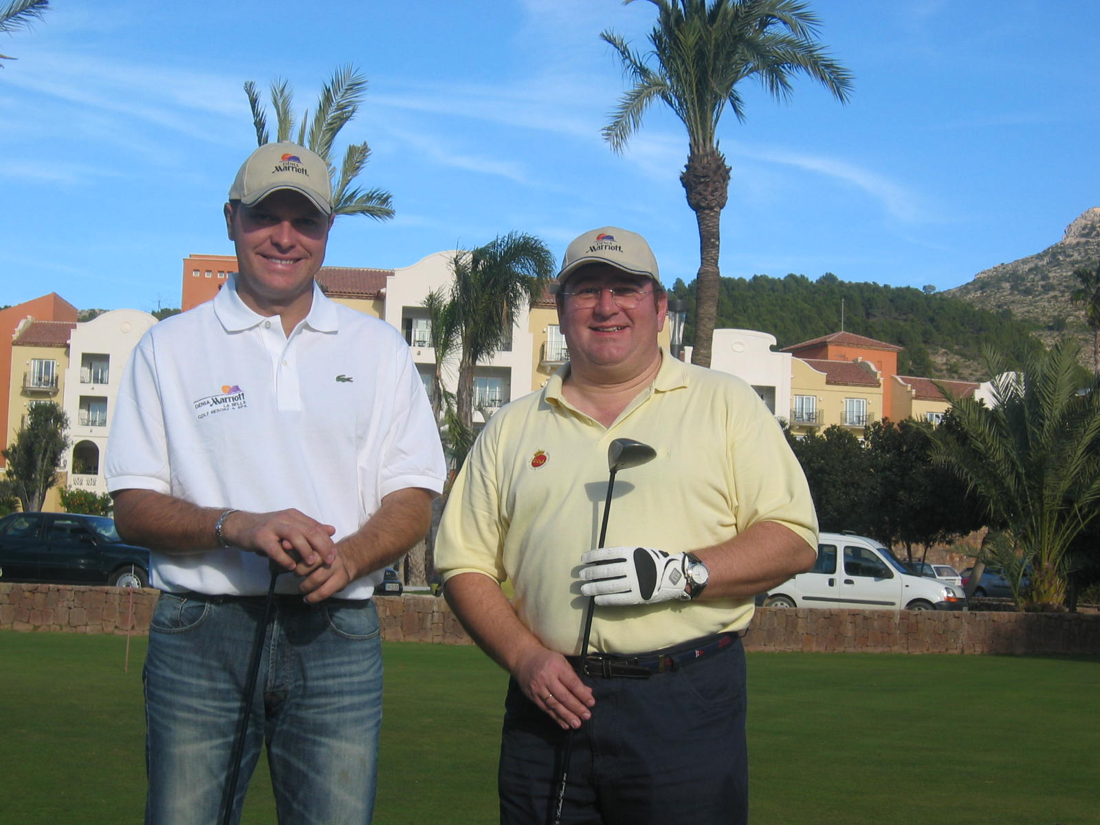 - Con el campeón José Manuel Lara, jugando al golf en el Marriott en Denia.