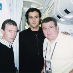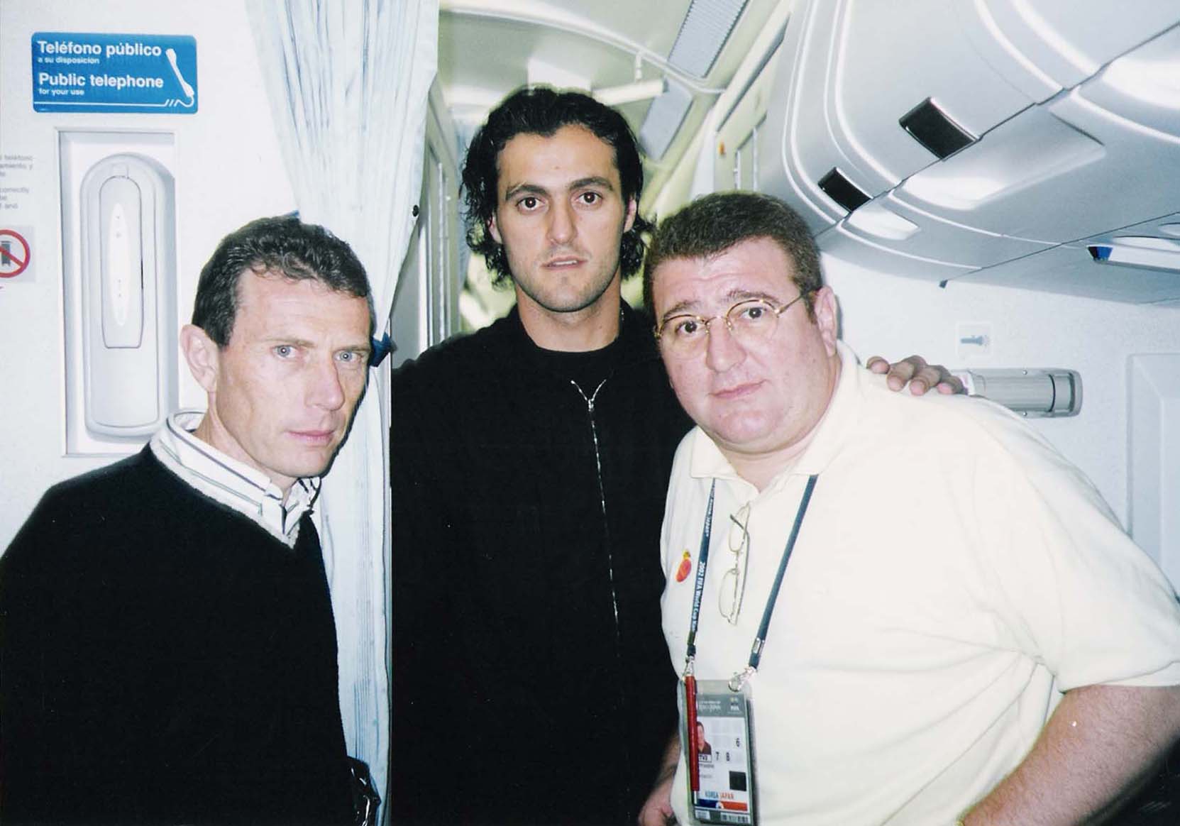- Con Butragueño y Kiko en un vuelo de regreso del Mundial de Corea-Japón.