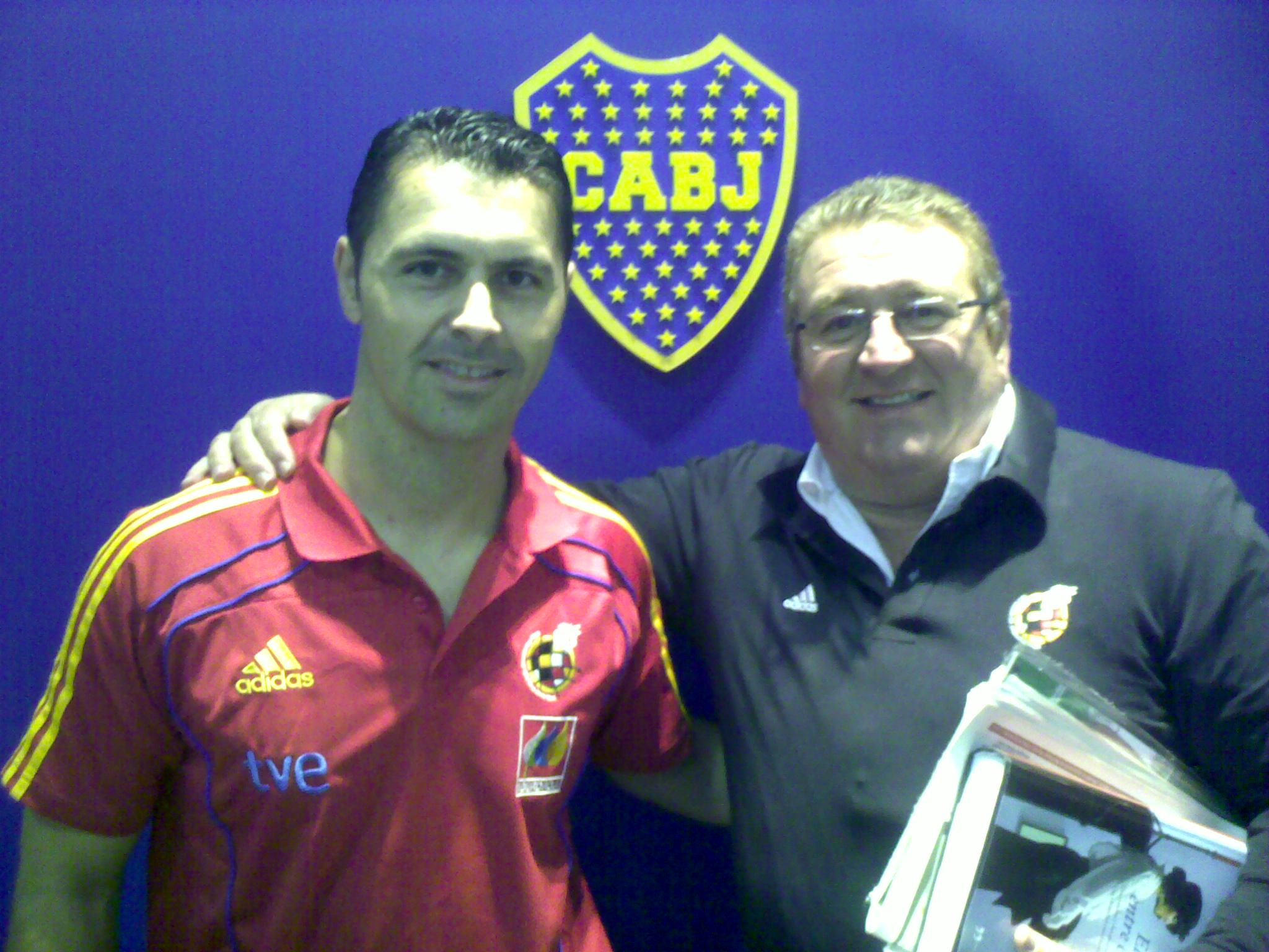 - Con Toni, compañero en la Seleccion, en la Bombonera.