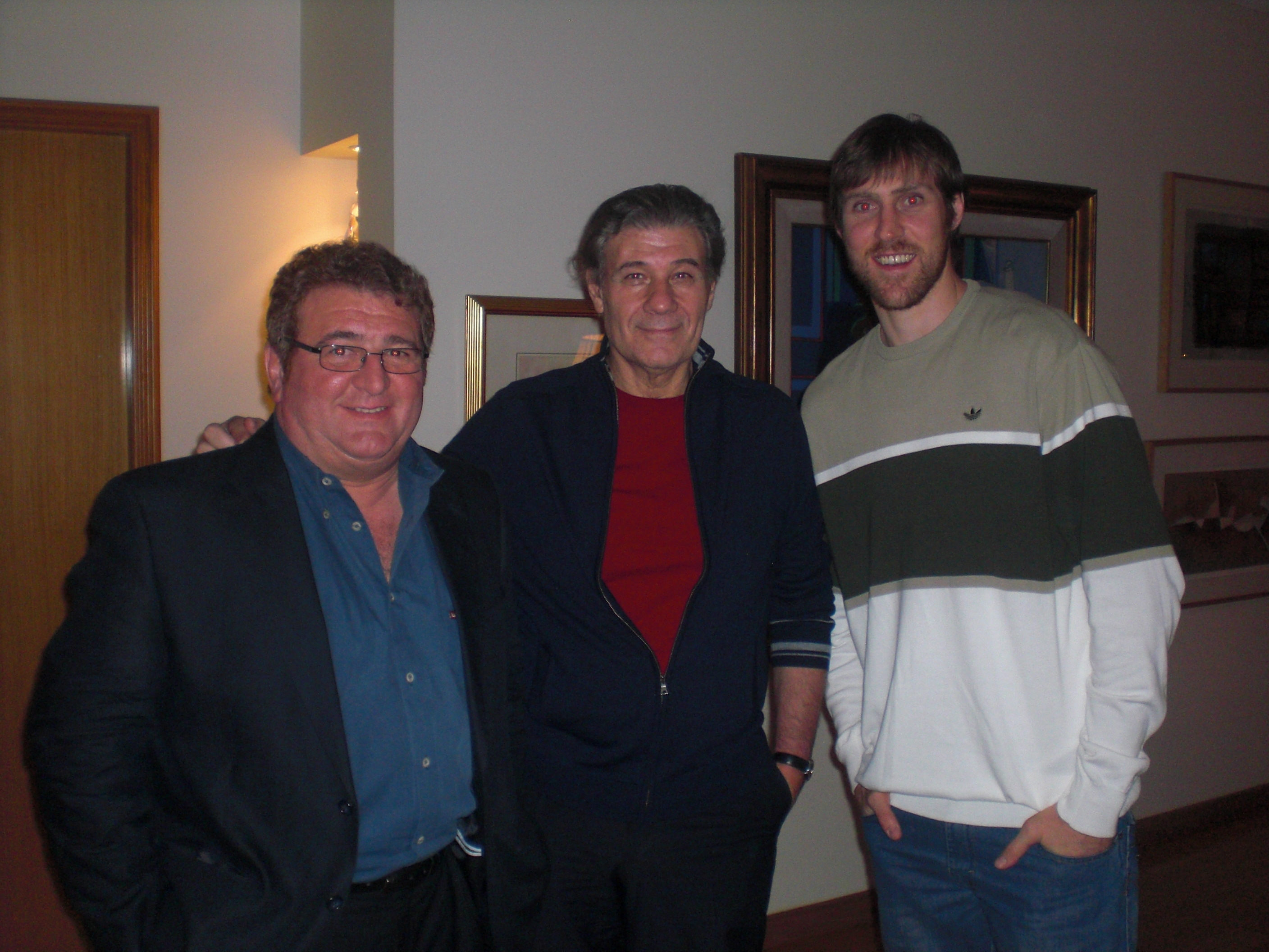 - Con Domingo Balmanya (QEPD) y Luis Suárez en el Hotel Barcelona Plaza.